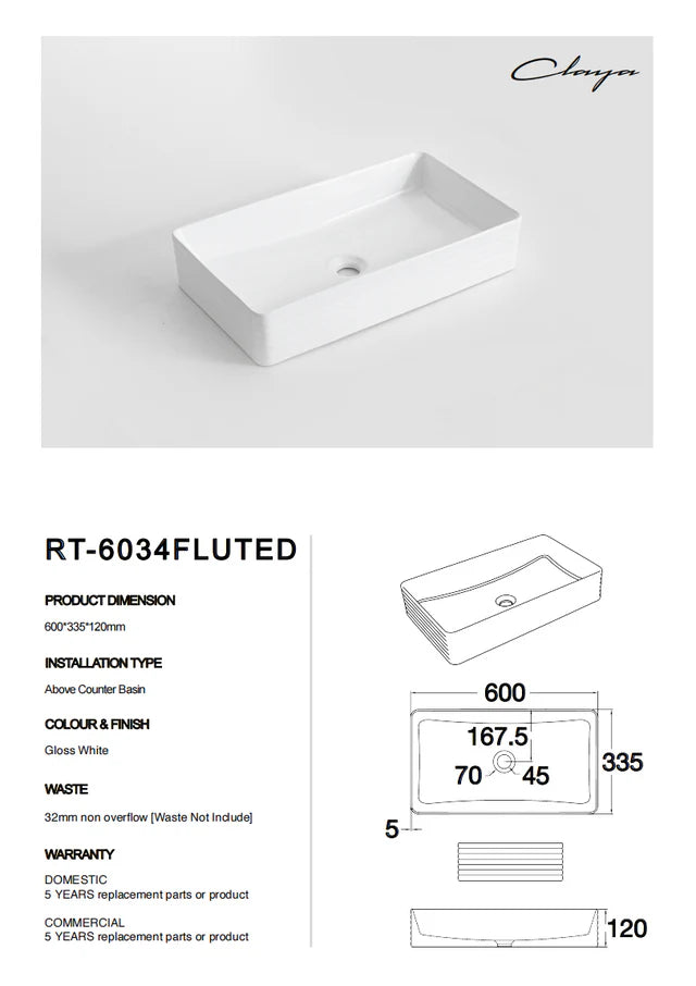 - Waste: 32mm non-overflow