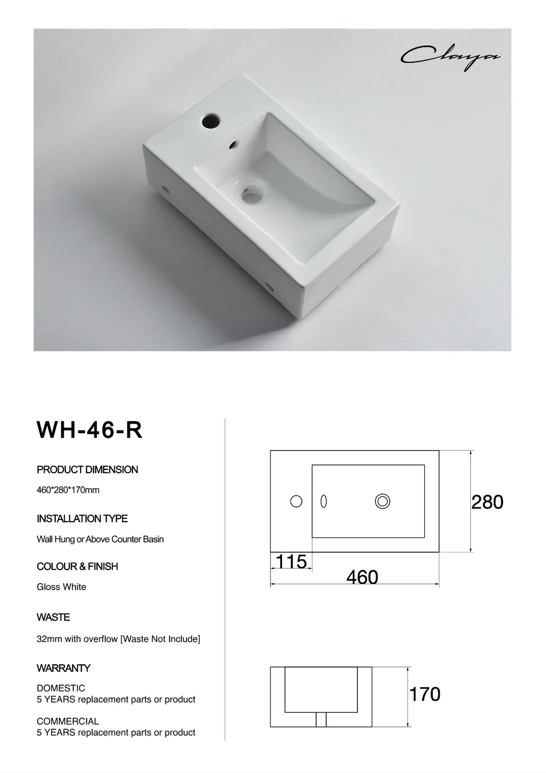 - Waste: 32mm With overflow