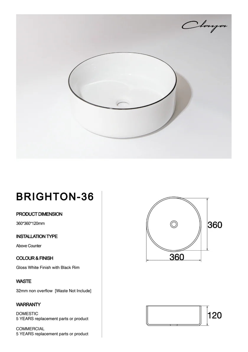 - Waste: 32mm non overflow