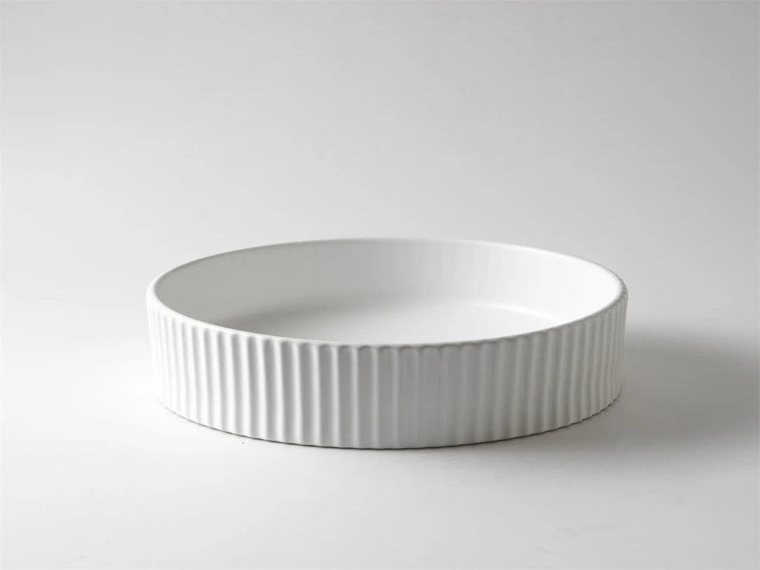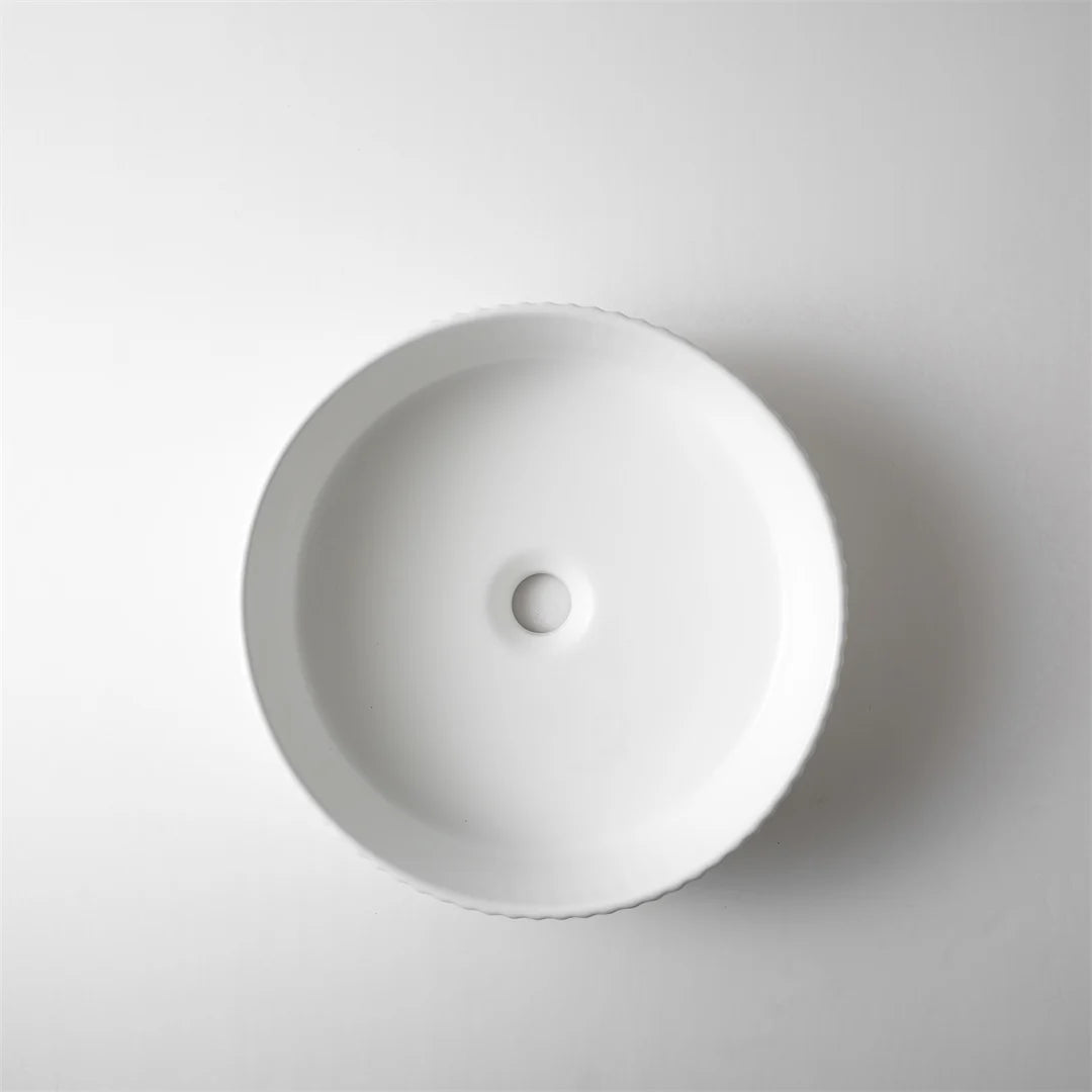Elevate your bathroom design with the Lucid-40-MW, a beautifully crafted fluted round basin from Claya Bathware's Fluted Tone collection. Designed in Australia, this basin combines minimalist aesthetics with tactile elegance, making it a standout feature in any modern bathroom.